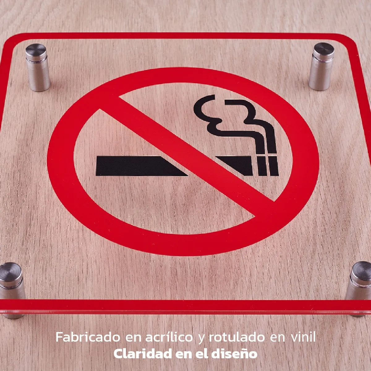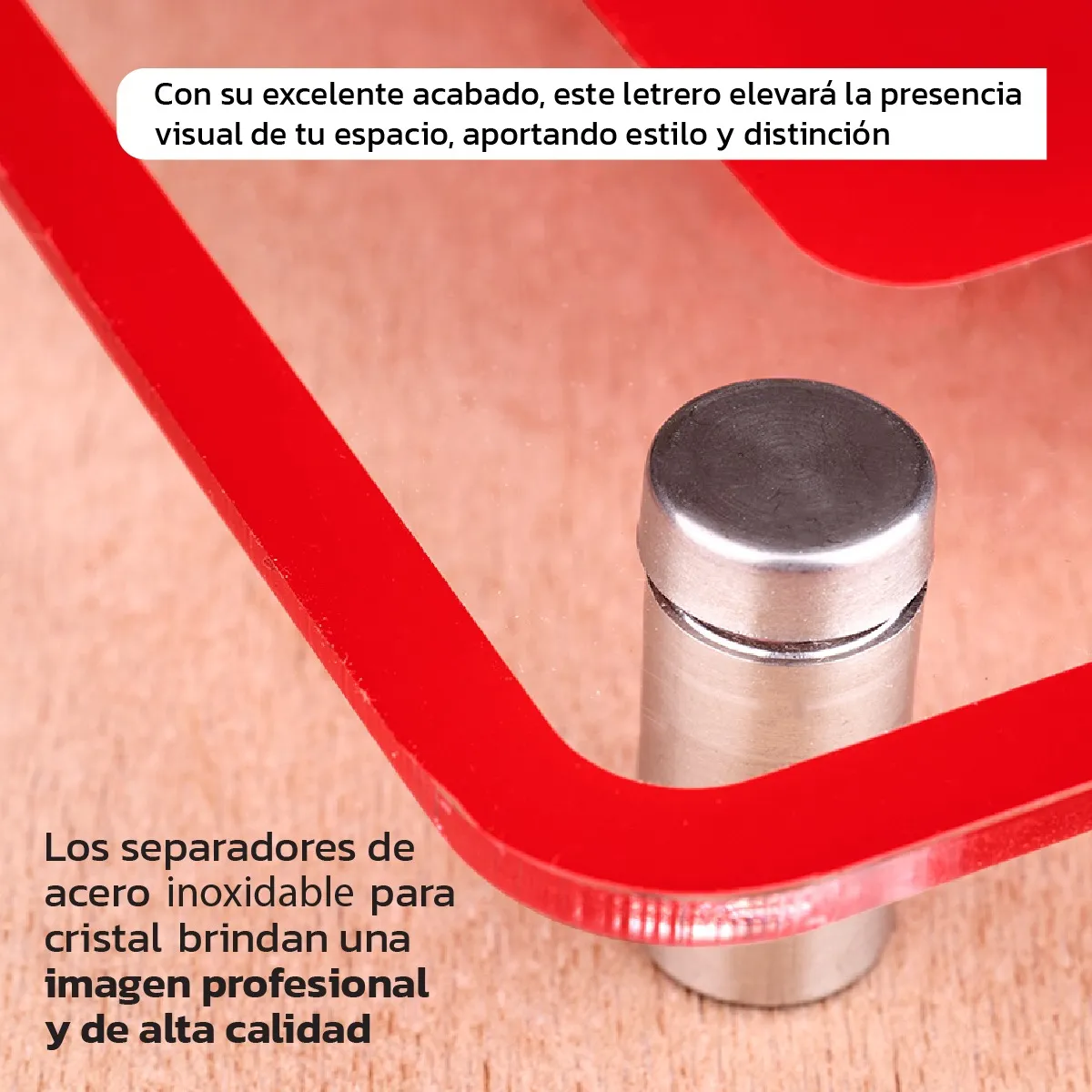 Letrero de acrílico transparente de 3mm de espesor, rotulado con vinil. Incluye chapetones y tornillería para su instalación.